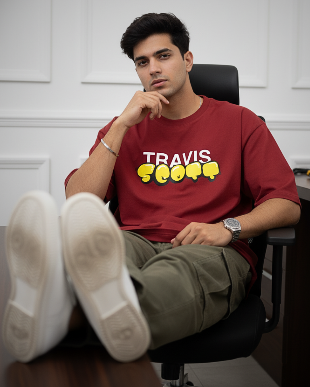A tee that screams “Utopia” vibes! This Oversized Tee features a bold Travis Scott typography design front and center, because why whisper your artist’s name when you can wear it?